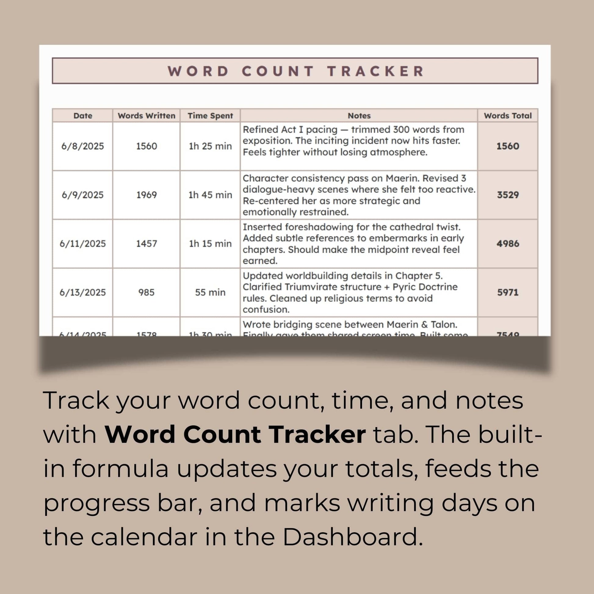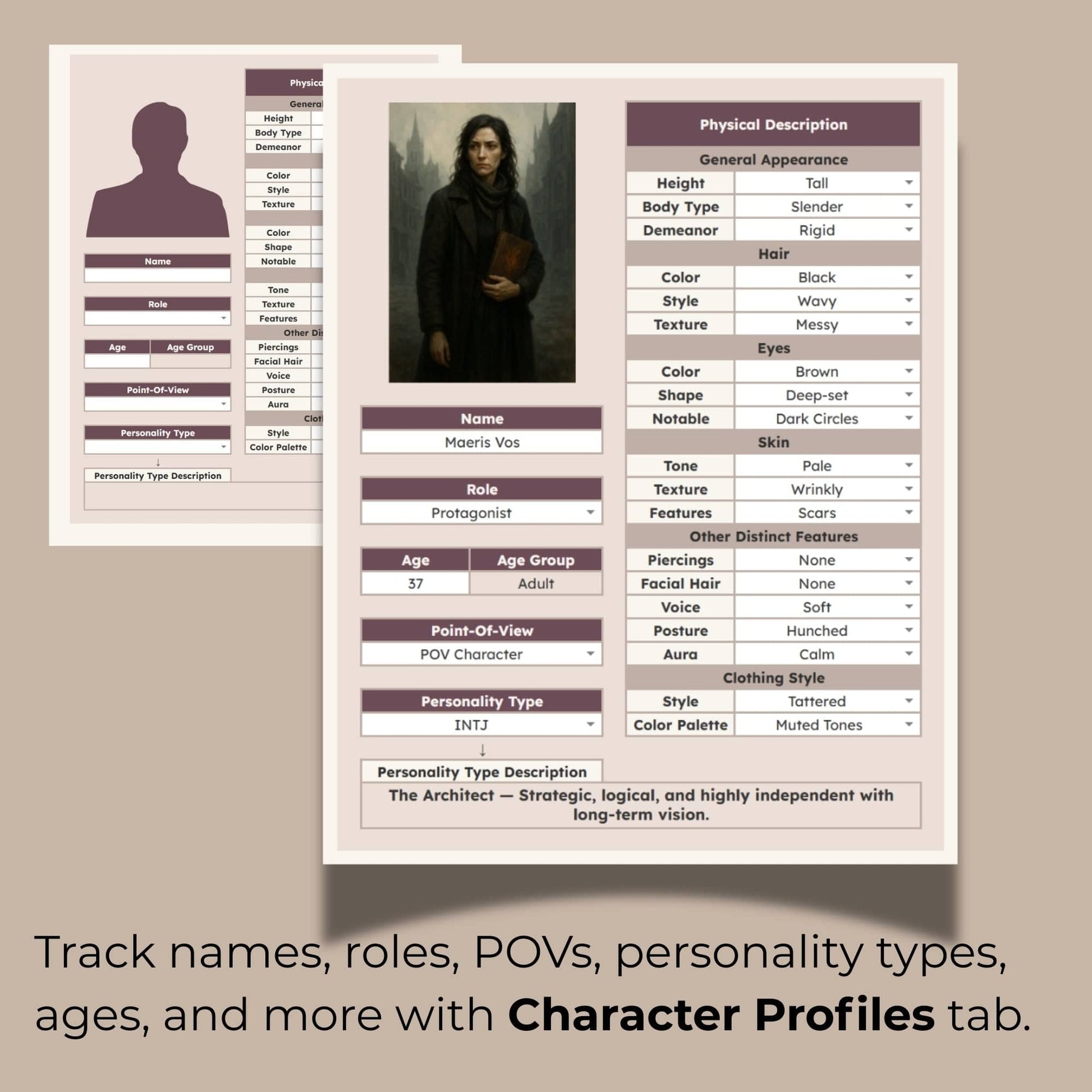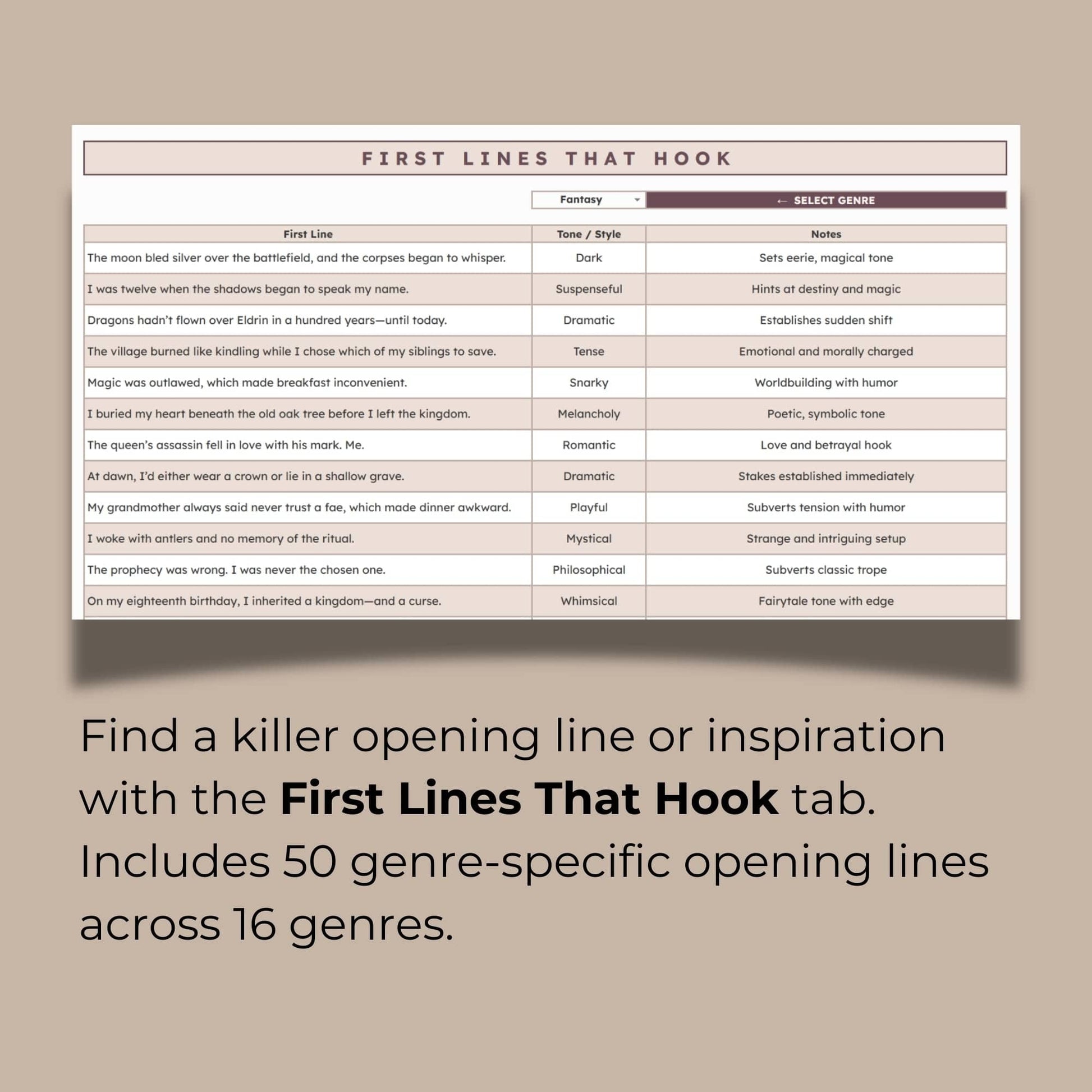 A Google Sheets planner that takes your project from messy idea to finished draft. Track word counts, map plots, build worlds, profile characters, and dump notes - all in one aesthetic, reusable spreadsheet. Comes with 5 alternate themes, because your spreadsheet should match your current breakdown.